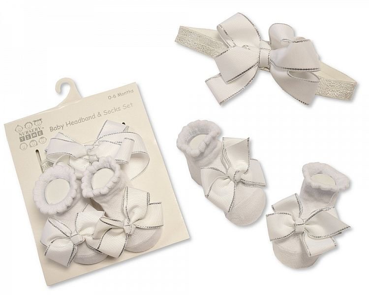 Baby Socks and Headband Set – White/Silver